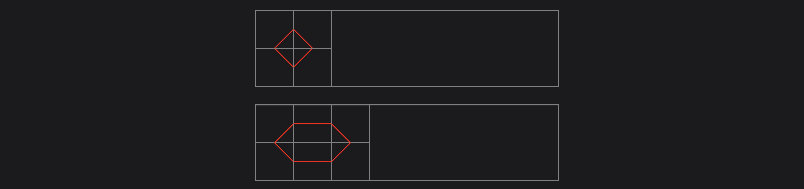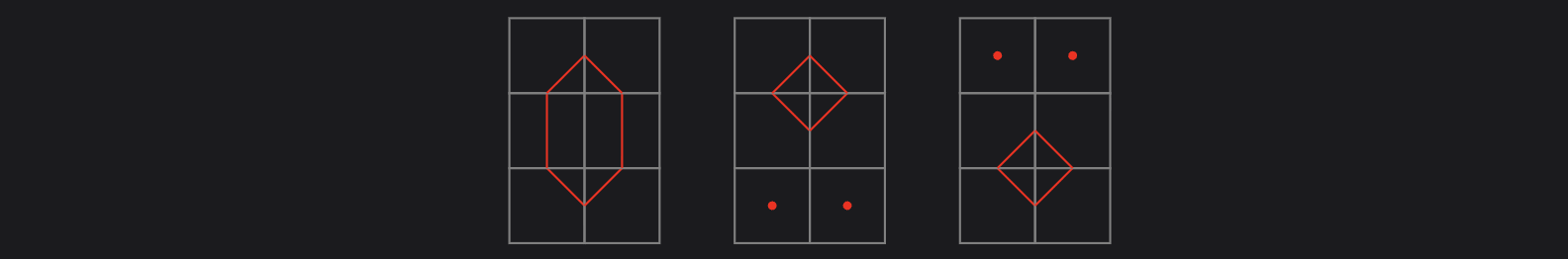 Here we denote cells that can be any tile with a dot, and refer to them as an open. As we have $6$ distinct tiles, we conclude that $t_{3,2} = 1 + 6^2 + 6^2 = 73.$ However, if we were to continue similarly with $t_{4,2}$ with the following $7$ cases, we would incorrectly conclude that there are $3962$ in total.