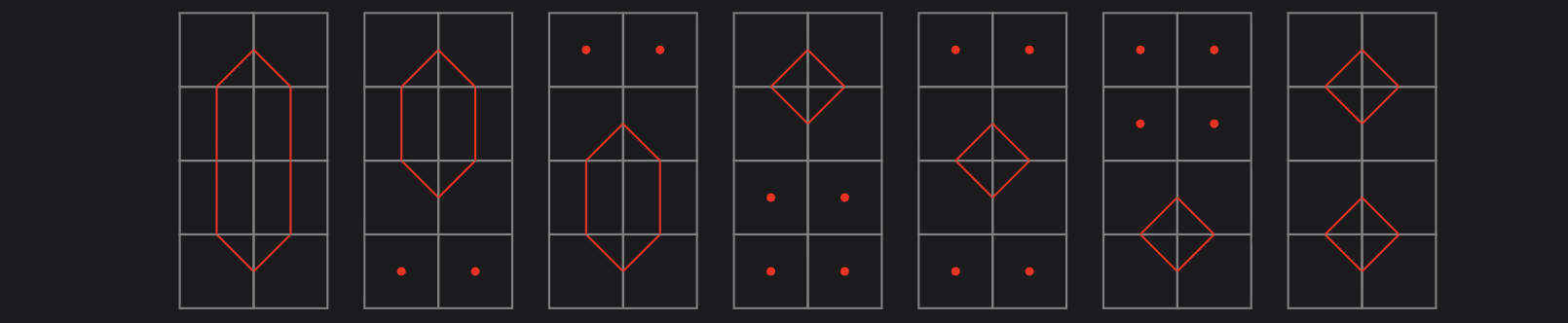 and create a $n \times m$ rectangular grid using them. Let’s call these grids mosaics. For example, below is a $(7,5)-$mosaic.